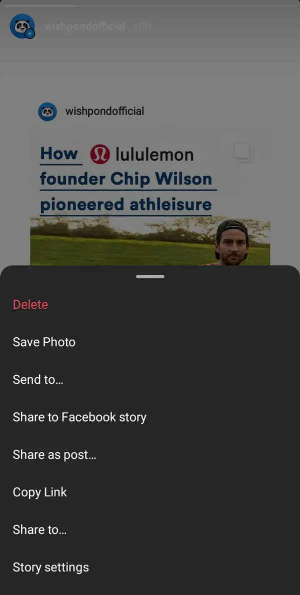 - “Add to Your Story”: Select this option from the pop-up menu.