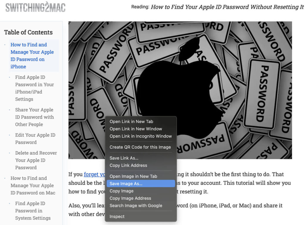 - Invoke the Context Menu: Move your mouse pointer over the image. Perform a Control-click, a two-finger tap on your trackpad, or a right-click with your mouse. A drop-down menu will appear.