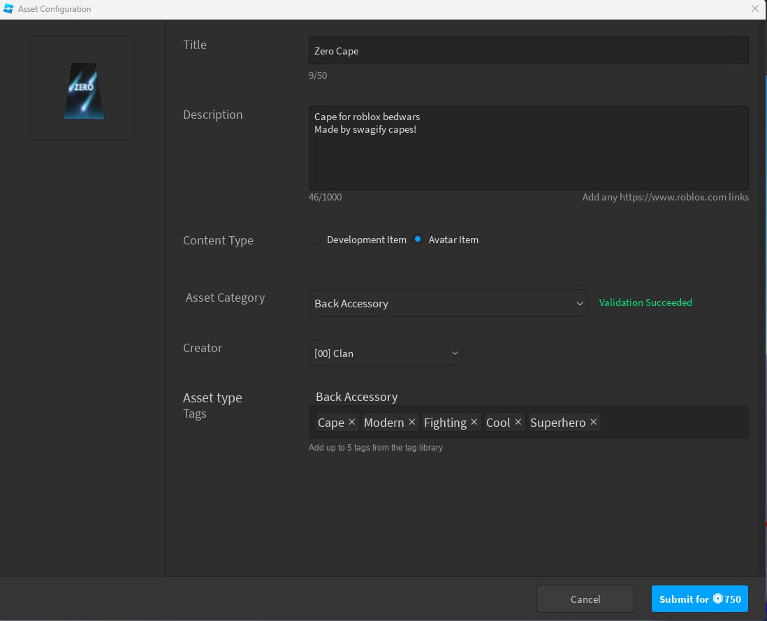 - Paste your unique asset ID into the input field. Your custom image should now appear on your in-game cape, making a personalized statement.