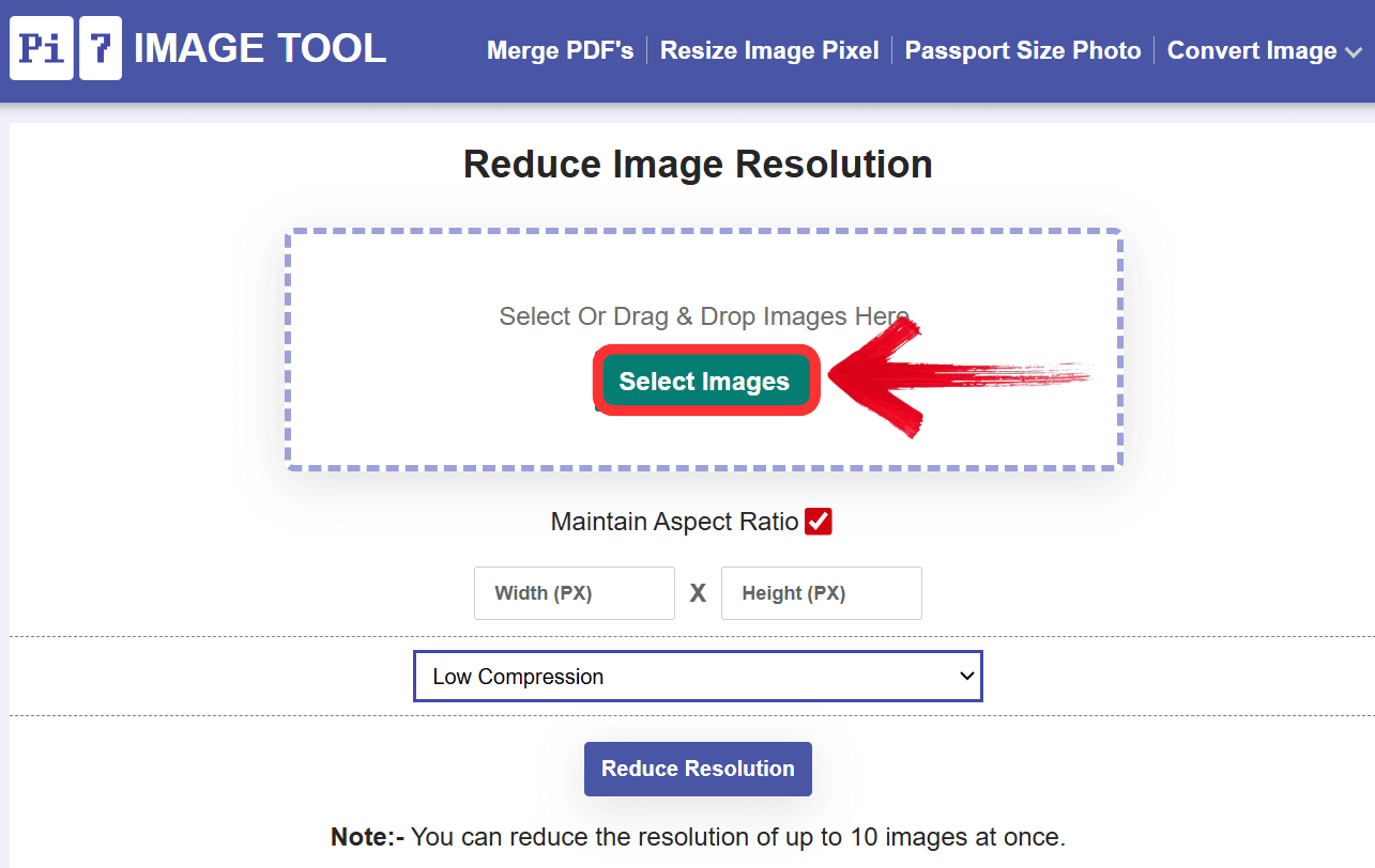 - Navigate to the Tool: Visit Tophinhanhdep.com’s reduce image resolution page.